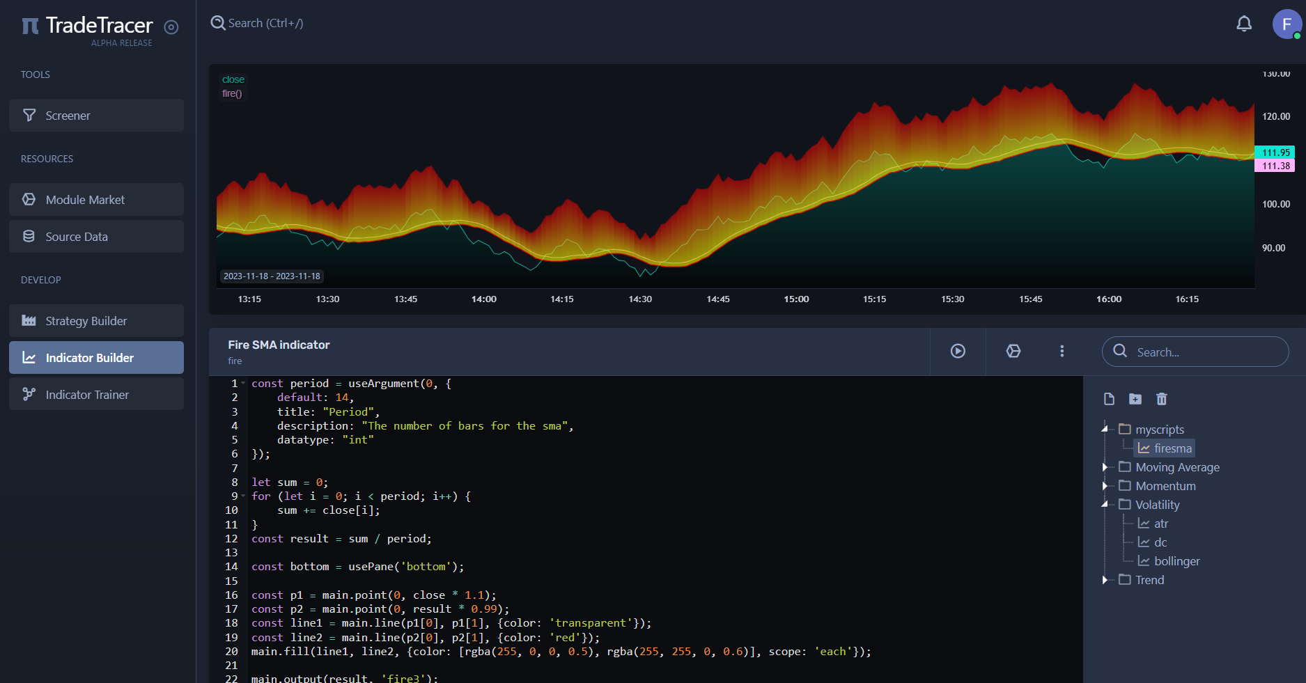 TradeTracer.ai allows for the creation of custom screeners, strategies, and indicators using JavaScript, giving traders the flexibility to design and automate their own trading processes. This blend of AI and customizable tools makes it a versatile choice for traders looking to refine and automate their strategies.